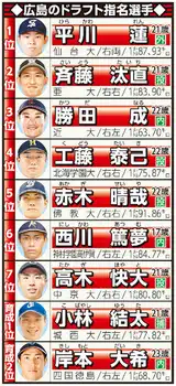 心は早くも赤ヘルの一員だった。日本ハムと外れ1位で競合しながら、新井監督が引き当てた平川。自身の名前が1巡目で呼ばれると、相好を崩しながら決意を口にした。