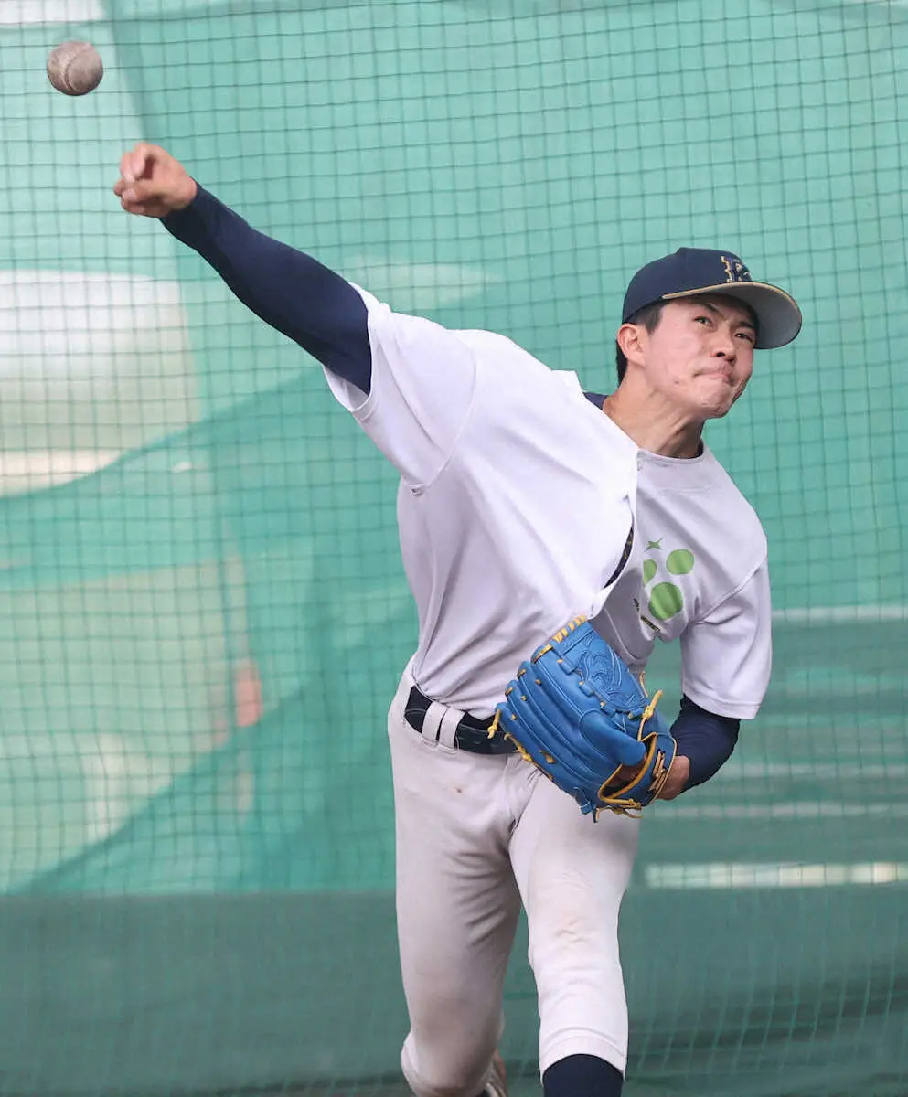 最速152キロの直球を軸に多彩な変化球を操る右腕。1メートル84、78キロと細身だが、岸江秀樹監督は「ポテンシャルの塊。プロで鍛えれば凄い投手になる可能性がある」と今後の飛躍に期待していた。