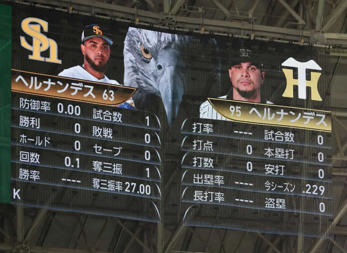 <ソ・神>7回、阪神代打・ヘルナンデスはソフトバンク2番手・ヘルナンデスの前に空振り三振に倒れる(撮影・椎名 航) Photo by スポニチ 日本シリーズで「ヘルナンデスVSヘルナンデス」実現!球場沸いた 軍配が… ギャラリーで見る この記事のフォト 2025年10月26日の画像一覧 もっと見る 2025年10月26日の画像をもっと見る