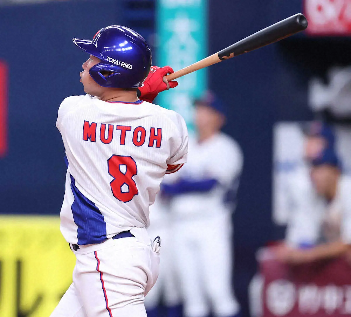 カウント0―1からの2球目。狙っていた直球を捉えると、右翼席へ飛び込む3ラン。直前の8回の打席では右太腿裏に死球を受け、痛みのある中、主将自らが最後まで諦めない姿勢を示した。
