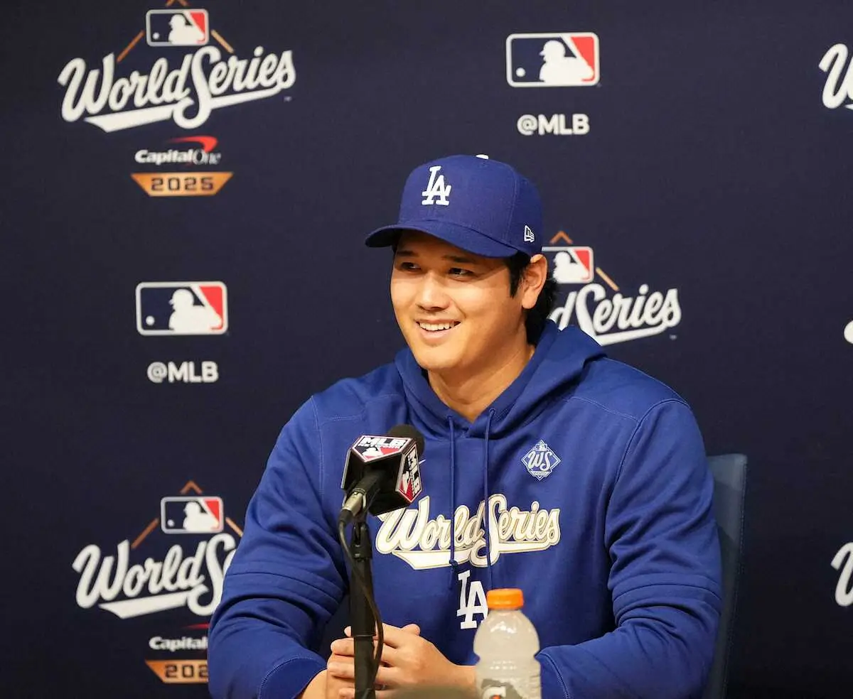 ブルージェイズとのワールドシリーズ(WS=7回戦制)で1勝1敗のタイとなったドジャースは26日(日本時間27日)、本拠地で全体練習を行った。28日(同29日)の第4戦で先発予定の大谷翔平投手(31)は練習後会見で、初戦で敵地ファンから浴びた「We don’t need you(お前なんていらない)」の大合唱に言及。真美子夫人(28)の“お気に入り”であり、ネタにしてイジられていたことを明かすなど爆笑会見となった。
