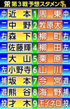 敵地での大敗から一夜明け、甲子園球場での全体練習に参加した。出番を前に軽めのメニューで最終調整。チームは前夜、14安打10得点の猛攻を受けた。特に柳田と周東には2試合で計11安打を献上。「つながり始めたら止まらないという感じだった。シンプルに強い」。柳田はシリーズ打率・556、周東は同・667。1勝1敗のタイだが完全に目覚めた打線を止めなければならない一戦となる。