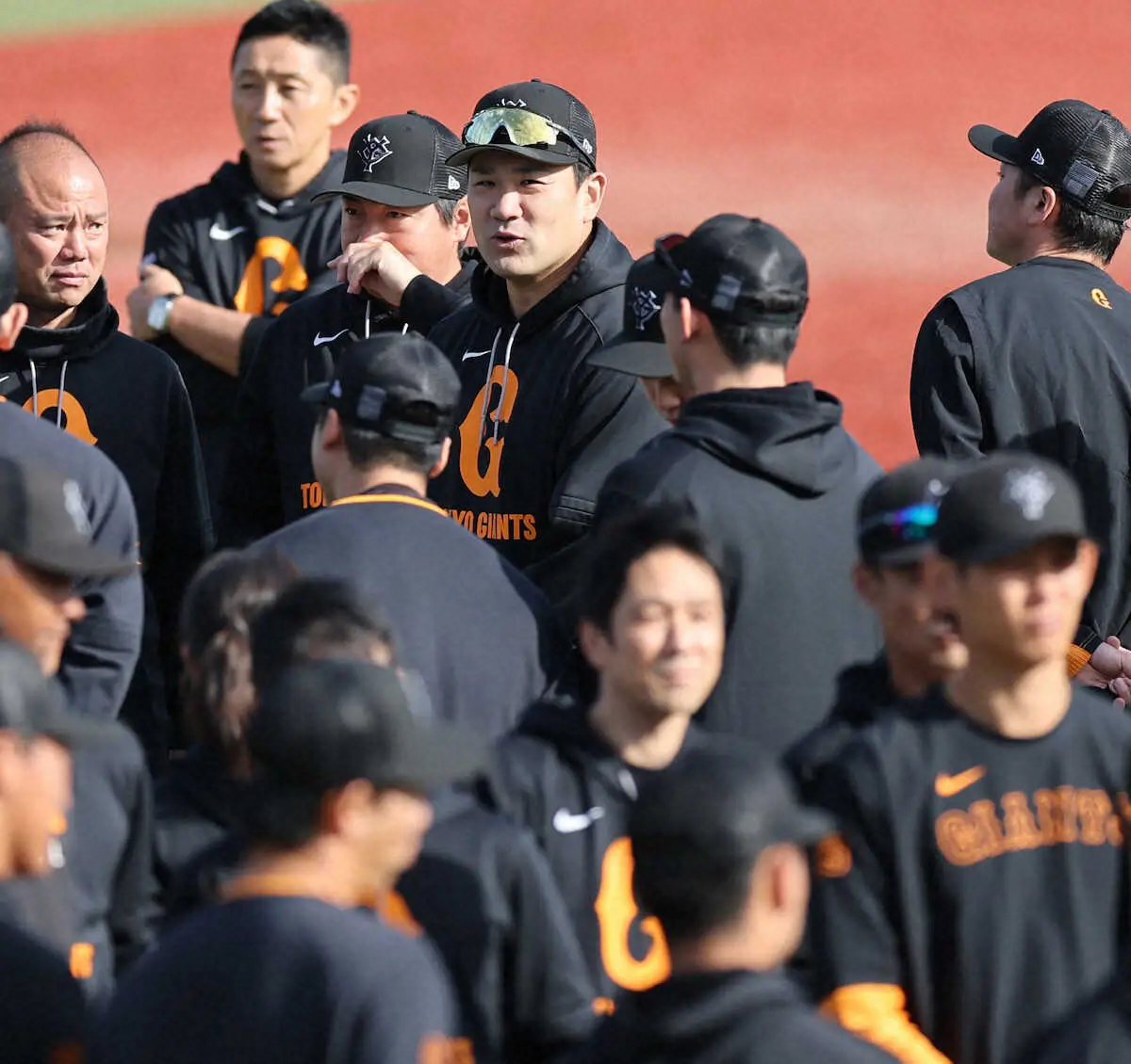 巨人・田中将大が今オフにメジャー挑戦を目指す岡本とキャッチボールを行った。その後は記念撮影を行うなど和やかなムードだった。