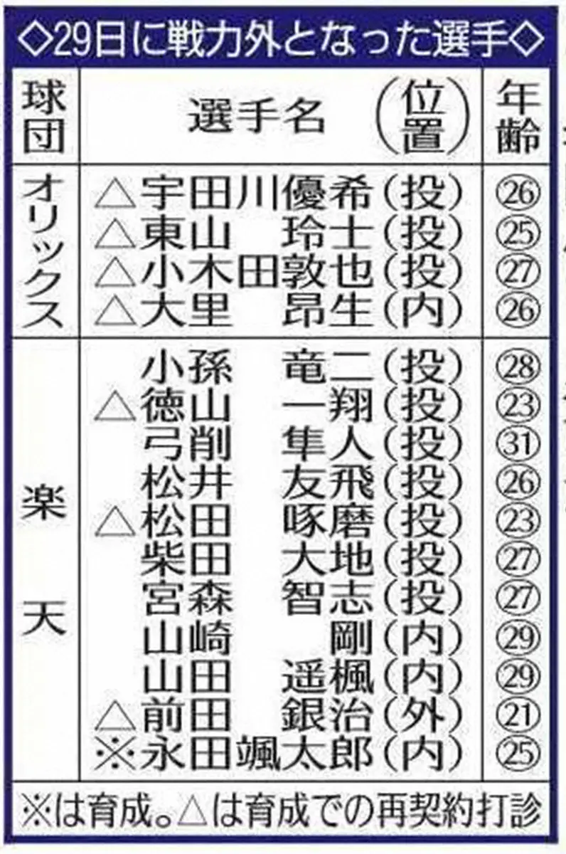 楽天・松井友飛 Photo by スポニチ 楽天 松井友飛、弓削隼人ら11人に戦力外通告 ギャラリーで見る この記事のフォト 2025年10月30日の画像一覧 もっと見る 2025年10月30日の画像をもっと見る