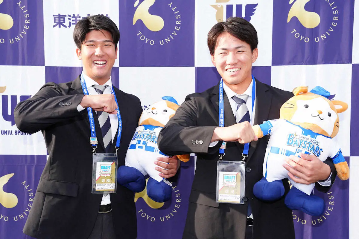 大の字にジャンプする東洋大・島田(左)と宮下(撮影・島崎忠彦) Photo by スポニチ DeNAドラ2&3の東洋大コンビが抱負 島田「160キロ」宮下「監督を胴上げ」 ギャラリーで見る この記事のフォト 2025年10月30日の画像一覧 もっと見る 2025年10月30日の画像をもっと見る