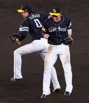 レギュラーシーズン、CSでも4番を務めた中村晃のユニホームは、小久保監督の胴上げにも参加した。