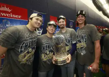 ワールドシリーズ<ブルージェイズ・ドジャース>連覇を達成し喜びを爆発させる大谷らドジャースナイン(撮影・沢田 明徳) Photo by スポニチ ドジャース5度目シャンパンファイト!MVP由伸は勝利の美酒に「やり切りま… ギャラリーで見る この記事のフォト 2025年11月02日の画像一覧 もっと見る 2025年11月02日の画像をもっと見る