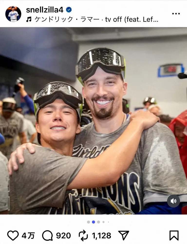 ドジャース・スネル(AP) Photo by AP スネル“大好き”山本由伸との肩組み写真や懐かし2ショット投稿「bestieでい… ギャラリーで見る この記事のフォト 2025年11月02日の画像一覧 もっと見る 2025年11月02日の画像をもっと見る