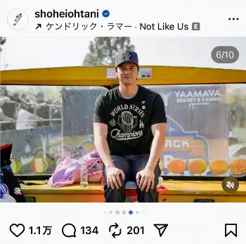 ドジャースの大谷翔平投手(31)が3日(日本時間4日)、自身のインスタグラムを更新。同日に行われたV2パレードや優勝報告会での様子を公開した。