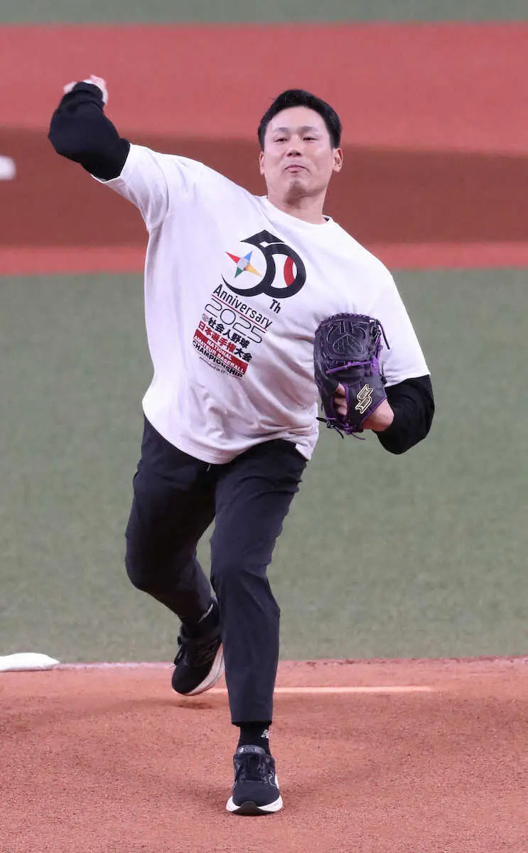 Honda熊本―鷺宮製作所の2回戦前に登場。ストライク投球を披露し「いい球が投げられた」と安堵(あんど)した。来季は社会人時代以来となる先発に挑戦。「社会人の時と同じように一つも負けられないという気持ちを常に持ち続けたい」と当時に思いをはせた。