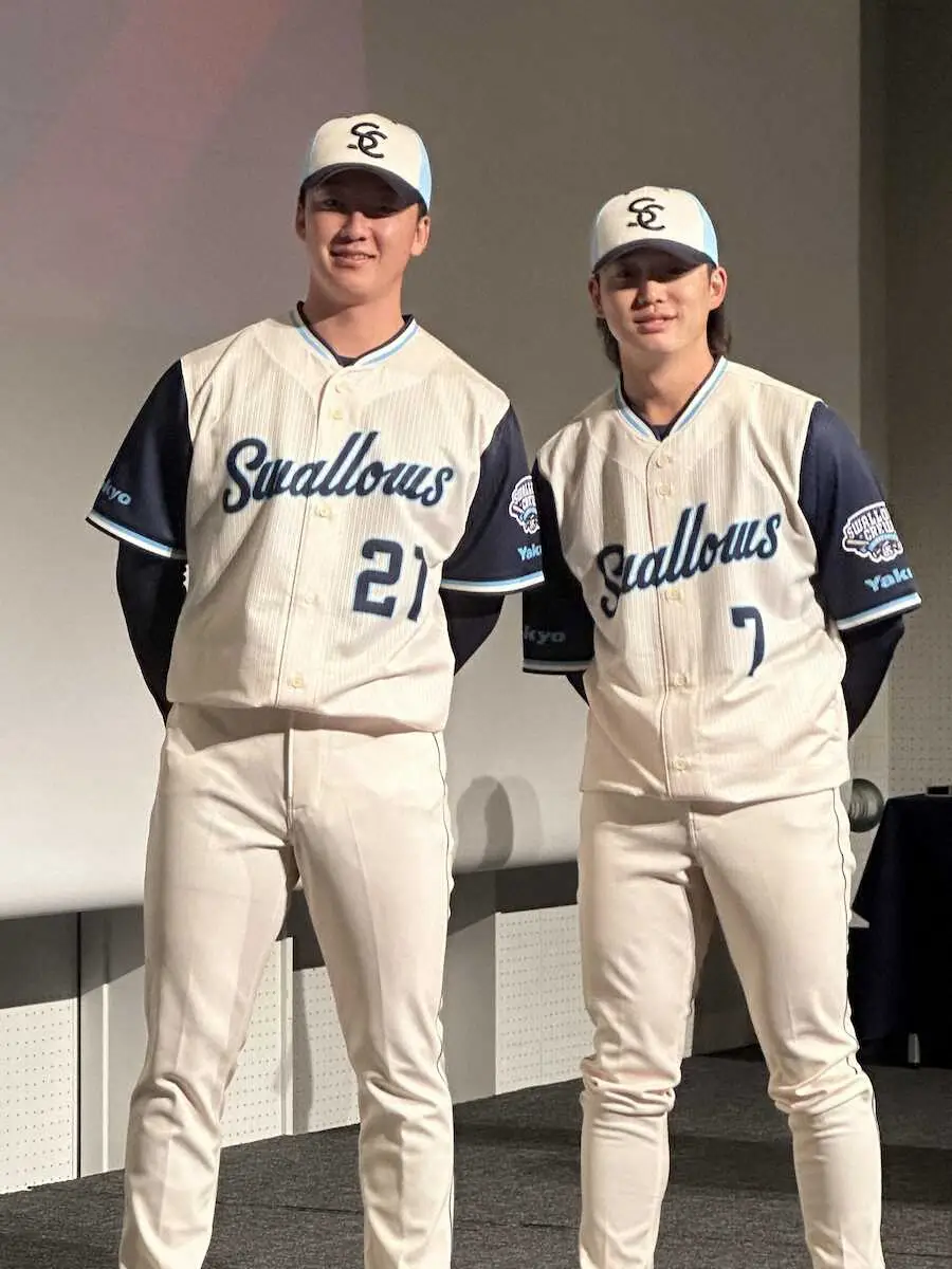 ヤクルトが来季の限定ユニお披露目 モデル役の長岡はメジャー挑戦する村上にエール