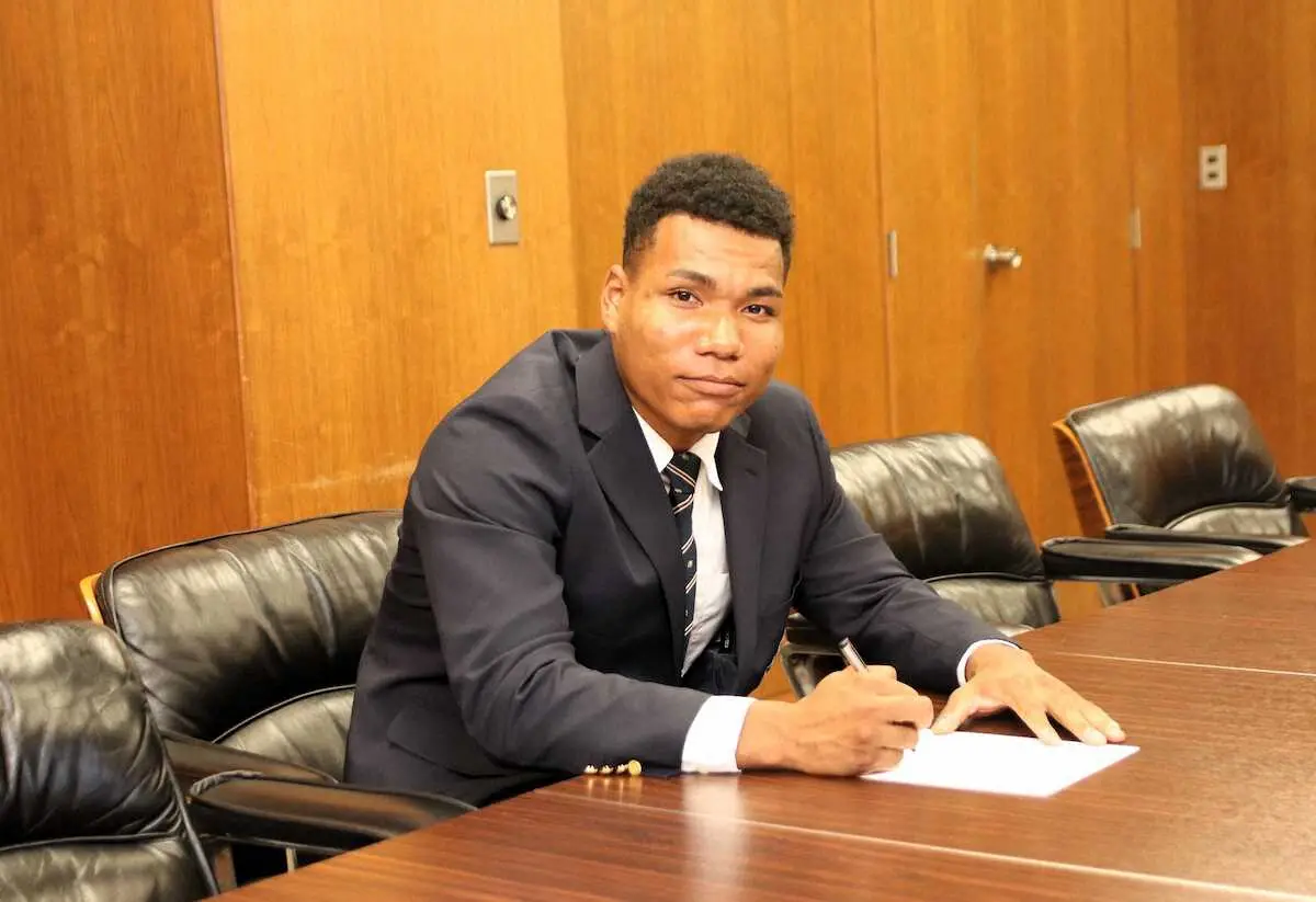 日本ハムと仮契約を結んだドラフト2位指名の大阪学院大・エドポロ(球団提供)