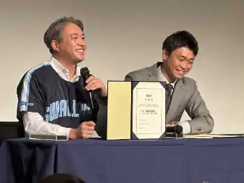 ヤクルトが来季の限定ユニお披露目 モデル役の長岡はメジャー挑戦する村上にエール