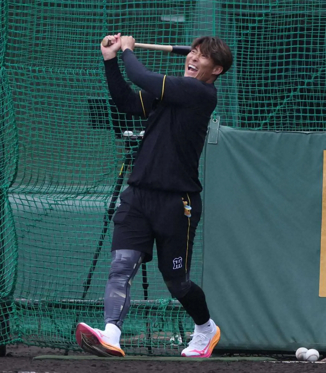 <阪神秋季キャンプ> フリー打撃で豪快なスイングを披露する糸井臨時コーチ(撮影・大森  寛明)