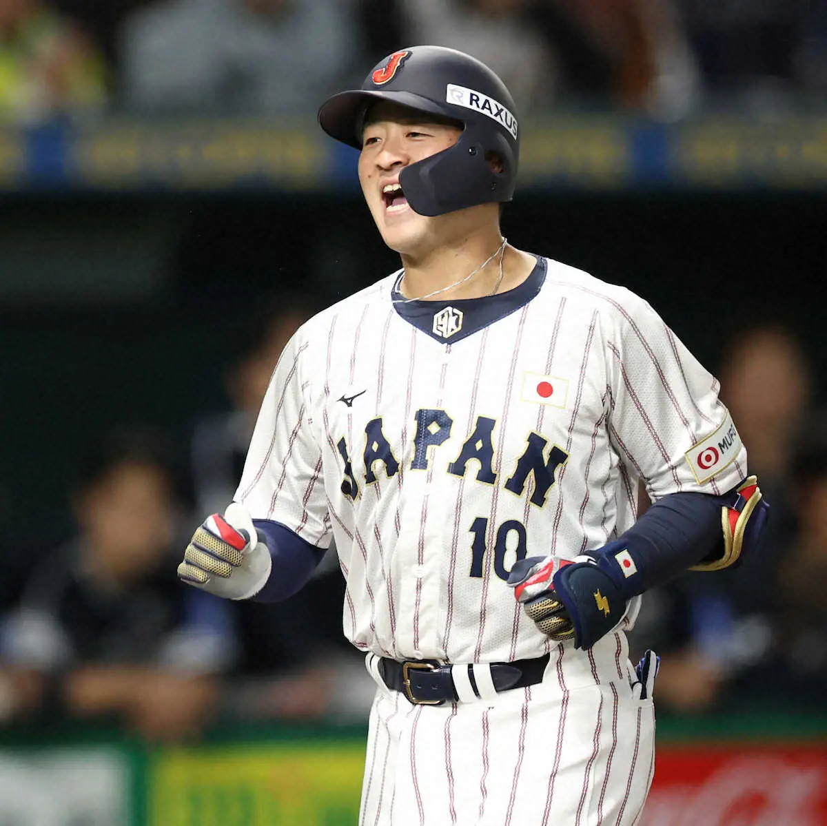 満面に笑みを浮かべダイヤモンドを1周した岸田。ベンチも大きな勝ち越し弾に大盛り上がりとなった。侍ジャパンの代打本塁打は2023年3月11日に行われたワールド・ベースボール・クラシック(WBC)1次ラウンド・チェコ戦の牧秀悟以来。