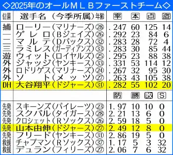 DH部門で選ばれた同僚の大谷とともに日本選手のファーストチーム入りは20年のダルビッシュ(当時カブス)、21~24年の大谷に続き3人目の快挙。