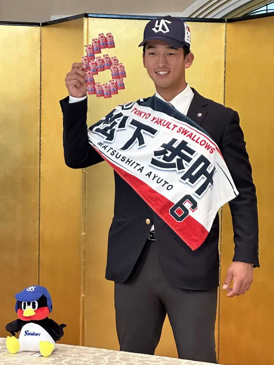 ヤクルトが今年のドラフト会議で1位指名したのは松下歩叶内野手(22=法大)だった。最大の補強ポイントだった強打の内野手の単独指名に成功し、青木宣親GM特別補佐は「プレーを見ていて、何とかしようという気持ち、諦めない気持ちが出ていた。人間的な部分がプレーに出る選手は、そうはいない。ゆくゆくはチームを引っ張る存在になってほしい。そういう思いで指名させてもらった」と大きな期待を口にする。