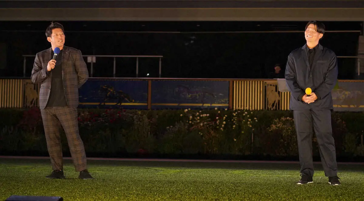 ヤクルト清水&大西が東京競馬場でトークショー 今年は収支大幅マイナス?大西のエリザベス女王杯本命は…