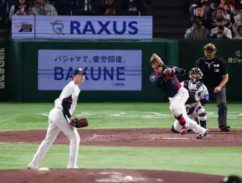 【侍ジャパン】追加招集の石上泰輝が勝ち越しの2点適時打!前日の西川、逆襲打の佐々木に続いたヤング侍