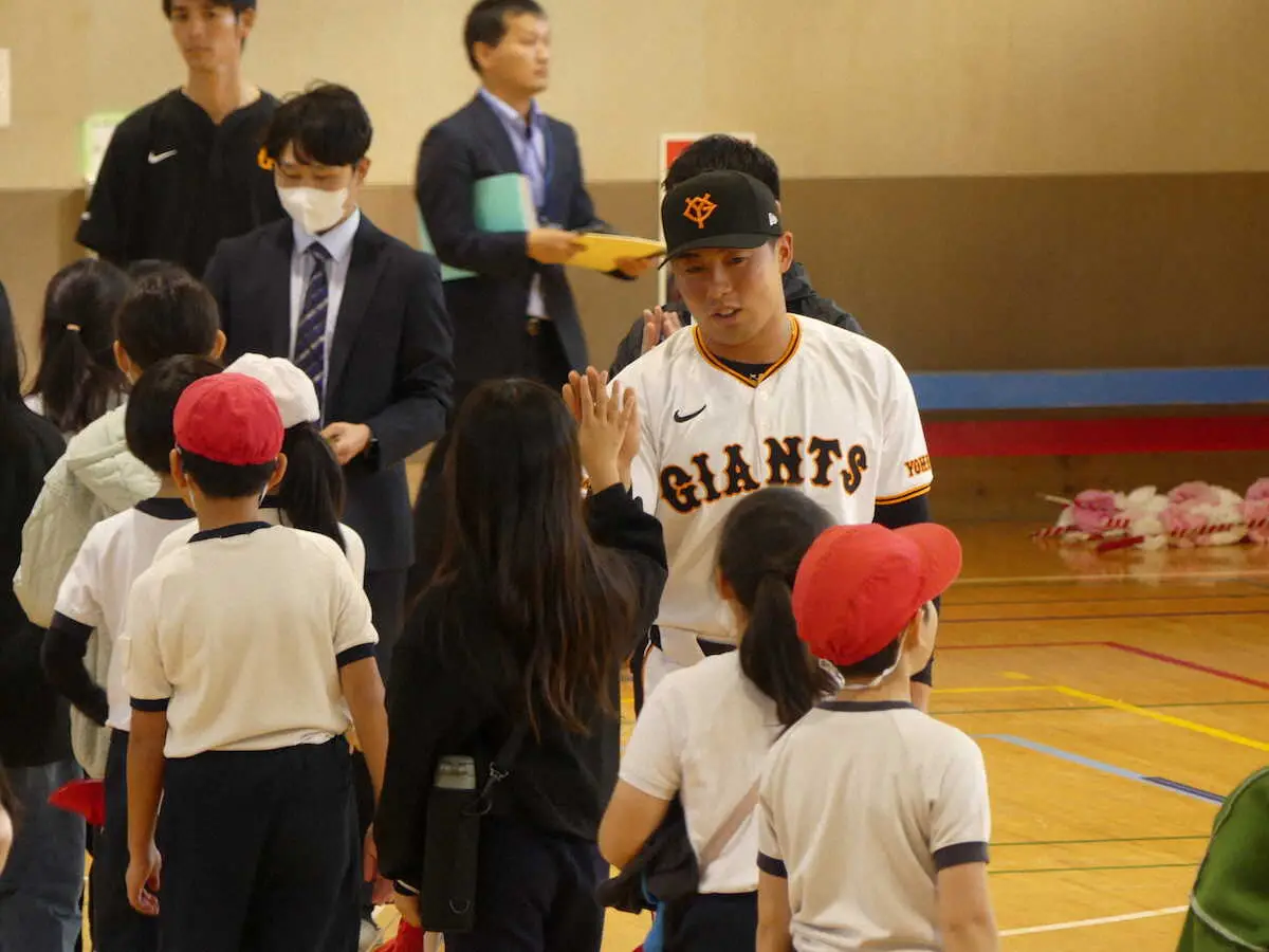 岡本ロードでブレークを目指す。巨人・浅野翔吾外野手(20)が東京・稲城市立稲城第一小学校を訪問。「本当にいつクビになるかわからない世界。油断せずに(岡本)和真さんみたいに4年目で花が咲くように頑張っていきたい」と決意を語った。