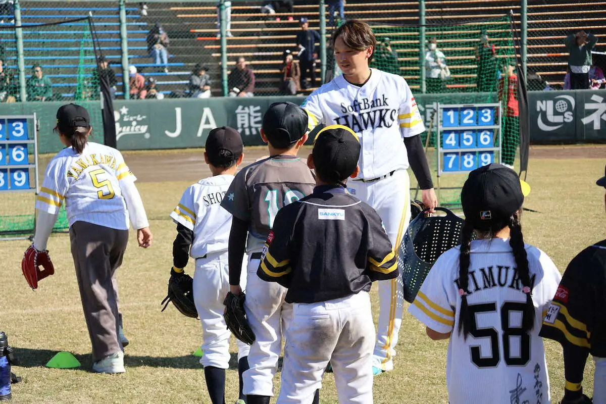 ソフトバンク・東浜巨が野球教室で子供たちと笑顔 国内FAの進捗は「特に何も話せることは」
