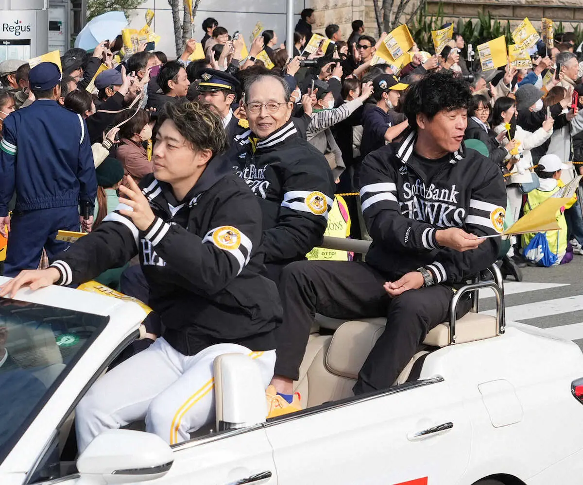<ソフトバンク優勝祝賀パレード>日本一を祝い福岡市内をパレードするソフトバンクナイン(撮影・岡田 丈靖) Photo by スポニチ リーグ連覇、5年ぶり日本一のソフトバンク優勝パレードに昨年を上回る29万人 ギャラリーで見る この記事のフォト 2025年11月24日の画像一覧 もっと見る 2025年11月24日の画像をもっと見る
