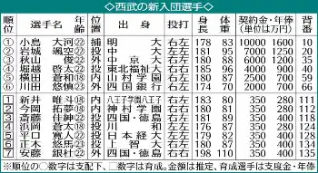 西武では、育成を含む13選手の新入団発表が行われ、ドラフト1位の小島(明大)の背番号が「10」に決まった。