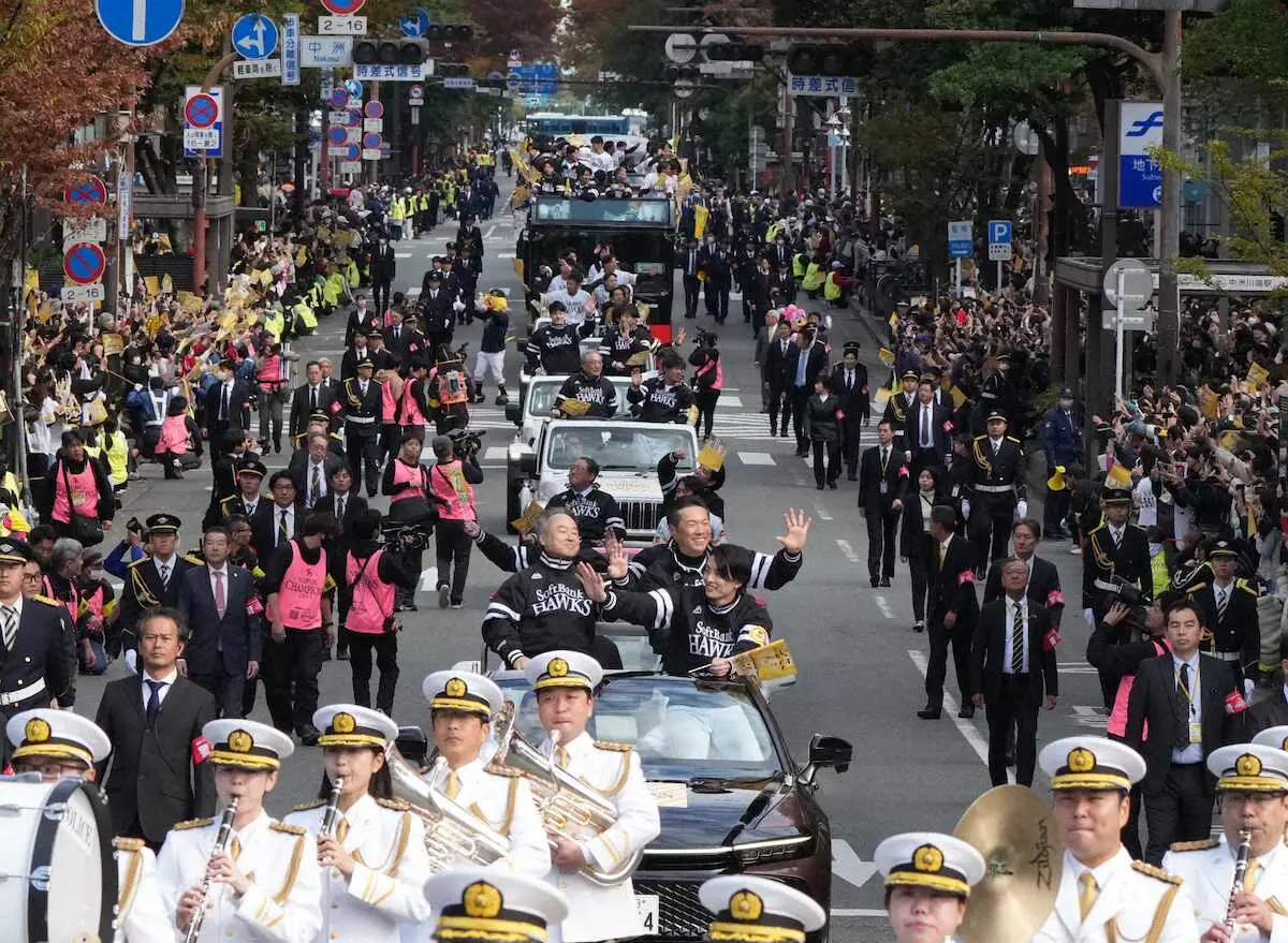 リーグ連覇と5年ぶりの日本一に輝いたソフトバンクの優勝祝賀パレードが24日、福岡市の中心部で開催された。約2・3キロのコースには昨年を上回る約29万人が集まった。小久保裕紀監督(54)はファンから祝福や感謝の声援を受けて感慨に浸ったが、パレード後にはみずほペイペイドームで来春キャンプへ向けたミーティングを実施。球団の福岡移転後では初となるV3へ向け、さっそく始動した。