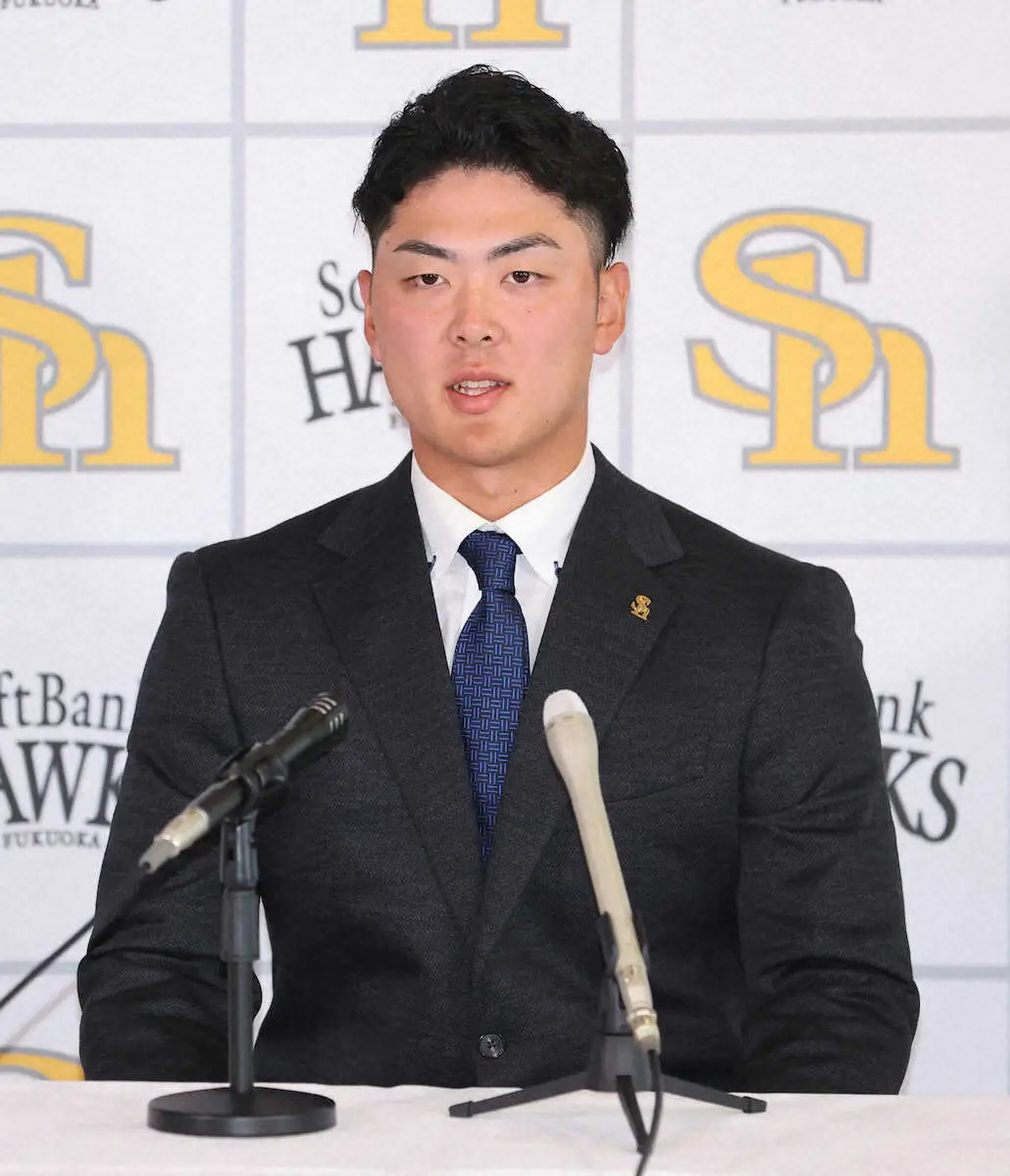 <ソフトバンク契約更改> 契約を更改した石塚 (撮影・成瀬 徹)