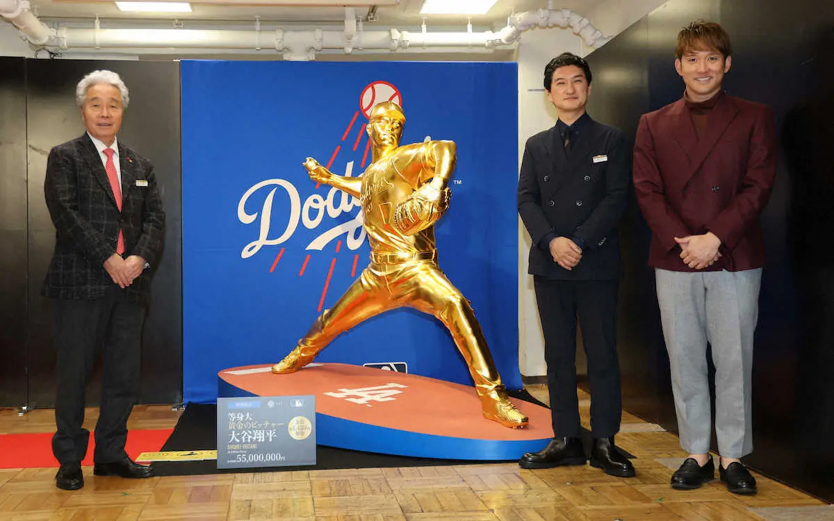 大谷翔平 投球姿の黄金像お披露目 杉谷拳士氏大興奮「金になれる人なんて数少ない」価格は5500万円