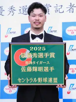 プロ野球の年間表彰式「NPB AWARDS 2025 supported by リポビタンD」が26日に都内で行われ、セ・リーグの最優秀選手賞(MVP)に阪神の佐藤輝明内野手(26)が選出された。