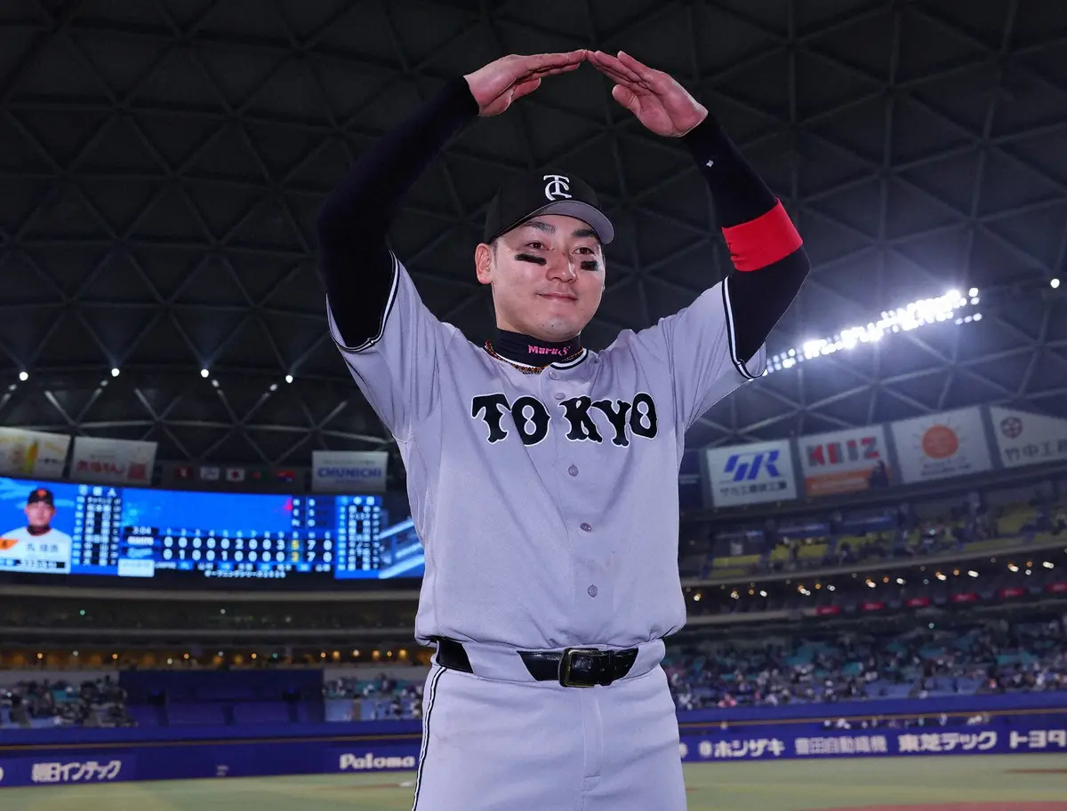 岡本のメジャー移籍には「みんなでカバーして。僕にもチャンスが出てきているので」とスタメン出場に意欲。田中将とのお立ち台の目標も掲げ、会場を沸かせた。
