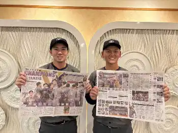 社会人野球・ヤマハが浜松市内で社外激励会を開催 約250人が参加し、本紙優勝特別号外を配布