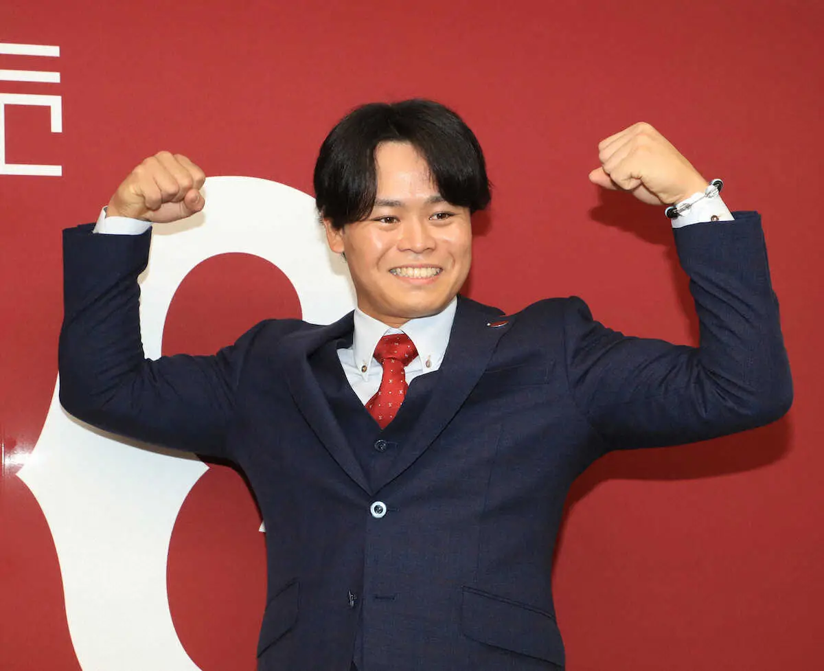 濃紺のスーツに赤のネクタイを締め、引き締まった表情で会見場に現れた。カメラマンからフラッシュの嵐を浴びた中山は、大幅アップのうれしさを隠しきれず頬が緩みっぱなしだ。