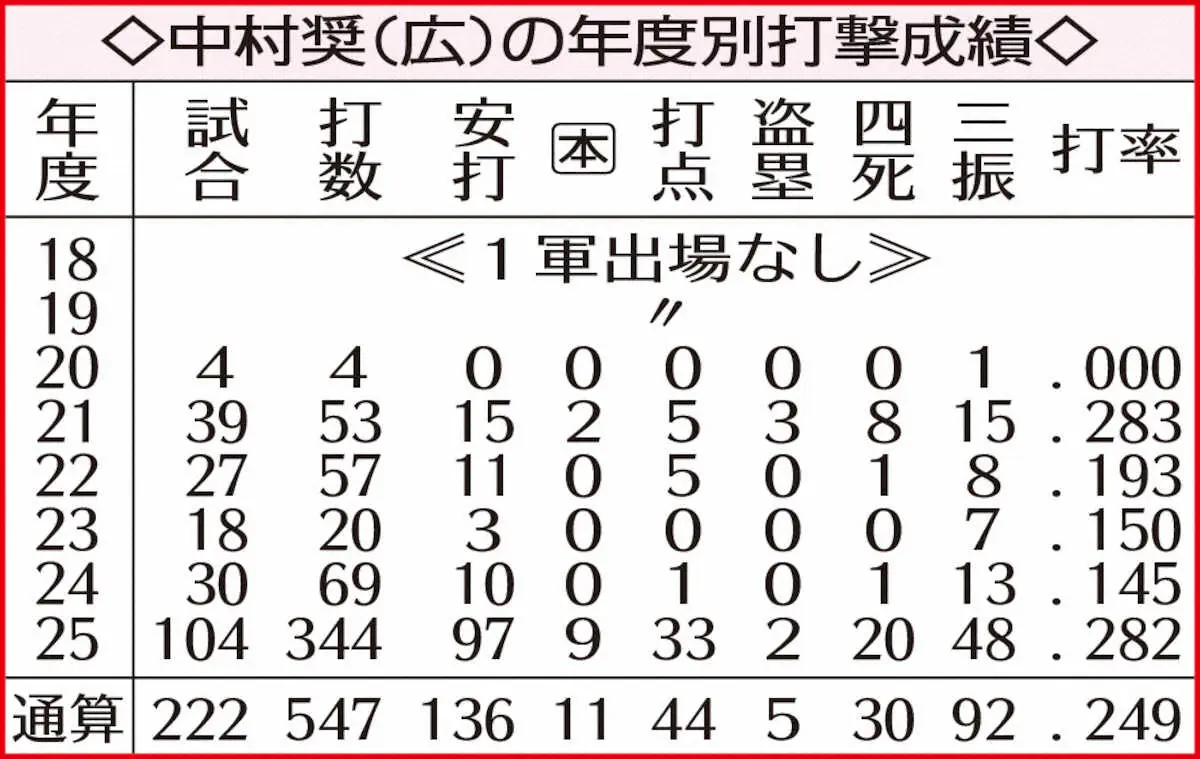広島・中村奨成 Photo by スポニチ 広島・中村奨成 今春に結婚していた「家族のために、一年でも長く野球を… ギャラリーで見る この記事のフォト 2025年12月04日の画像一覧 もっと見る 2025年12月04日の画像をもっと見る