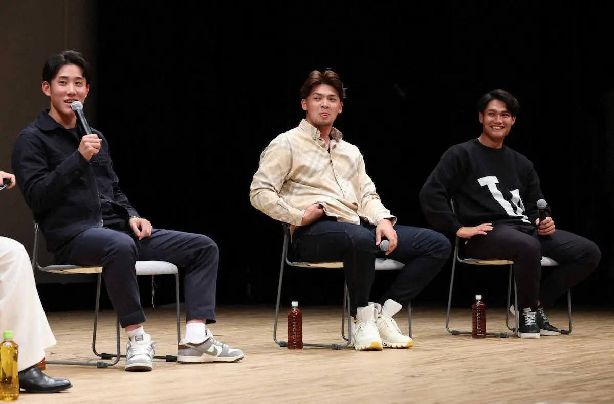 午後7時から始まったトークショーで富田が「3人でやるのは初めてです」と話し、2001年生まれのトリオが軽妙なトークで会場を沸かせた。