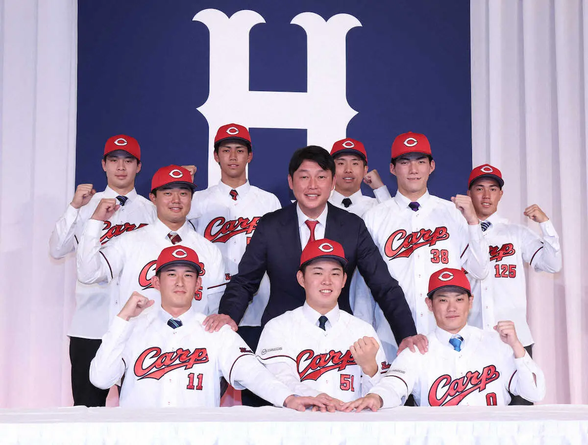 広島の新入団選手発表会見に出席した新井監督が、来春キャンプのメンバー振り分けについて言及。高卒で唯一指名されたドラフト6位・西川と右肘トミー・ジョン手術を受けた同7位・高木を除く7選手の1軍スタートを明言した。育成2選手も含む異例の大量抜てき。「高卒は1人だけで(7人は)大卒と独立リーグ(出身)。自分が編成とスカウトに(指名を)お願いした。1年目から自分で居場所をつかんでほしい」と期待した。