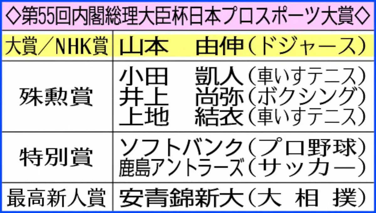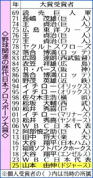 大賞を受賞したドジャース・山本(右)は内閣総理大臣杯を手に笑顔(左は麻生会長)(撮影・沢田 明徳) Photo by スポニチ ドジャース・山本由伸 WBC出場へ前向き発言「またあの大会でプレーできれ… ギャラリーで見る この記事のフォト 2025年12月18日の画像一覧 もっと見る 2025年12月18日の画像をもっと見る