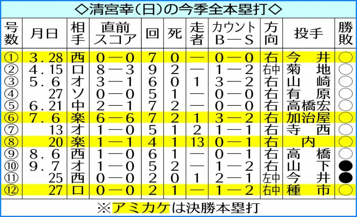 パ最多13度の勝利打点を記録した清宮幸 Photo by スポニチ パ最多V打点の日本ハム・清宮 来季は初の逆転V弾を ギャラリーで見る この記事のフォト 2025年12月18日の画像一覧 もっと見る 2025年12月18日の画像をもっと見る