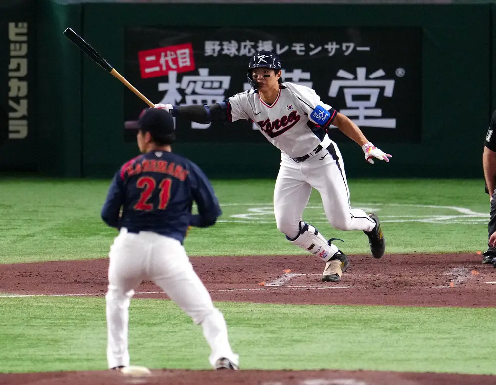 同内野手は今季144試合に出場し、打率・315、26本塁打、90打点、25盗塁、OPS・917を記録。11月15、16日に行われた侍ジャパンとの強化試合にも韓国代表として出場し、第1戦の4回に広島・森浦から本塁打を放った。
