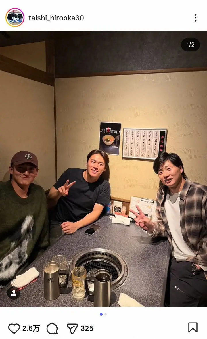 オリックスの広岡大志内野手(28)が28日までに自身のインスタグラムを更新。ドジャースの山本由伸投手(27)、オリックスの山崎颯一郎投手(27)との食事会ショットを披露した。