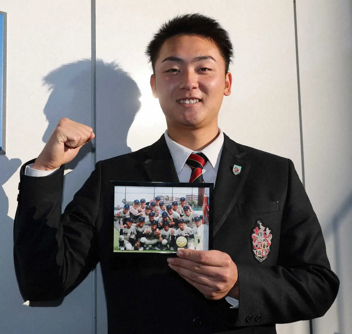 侍ジャパンU―18代表として昨年9月のU―18W杯で準優勝に貢献した大型遊撃手は「一番はワクワクしている。今から始まる新人合同自主トレでしっかりアピールしながら良い準備をしたいと思います」と目を輝かせた。
