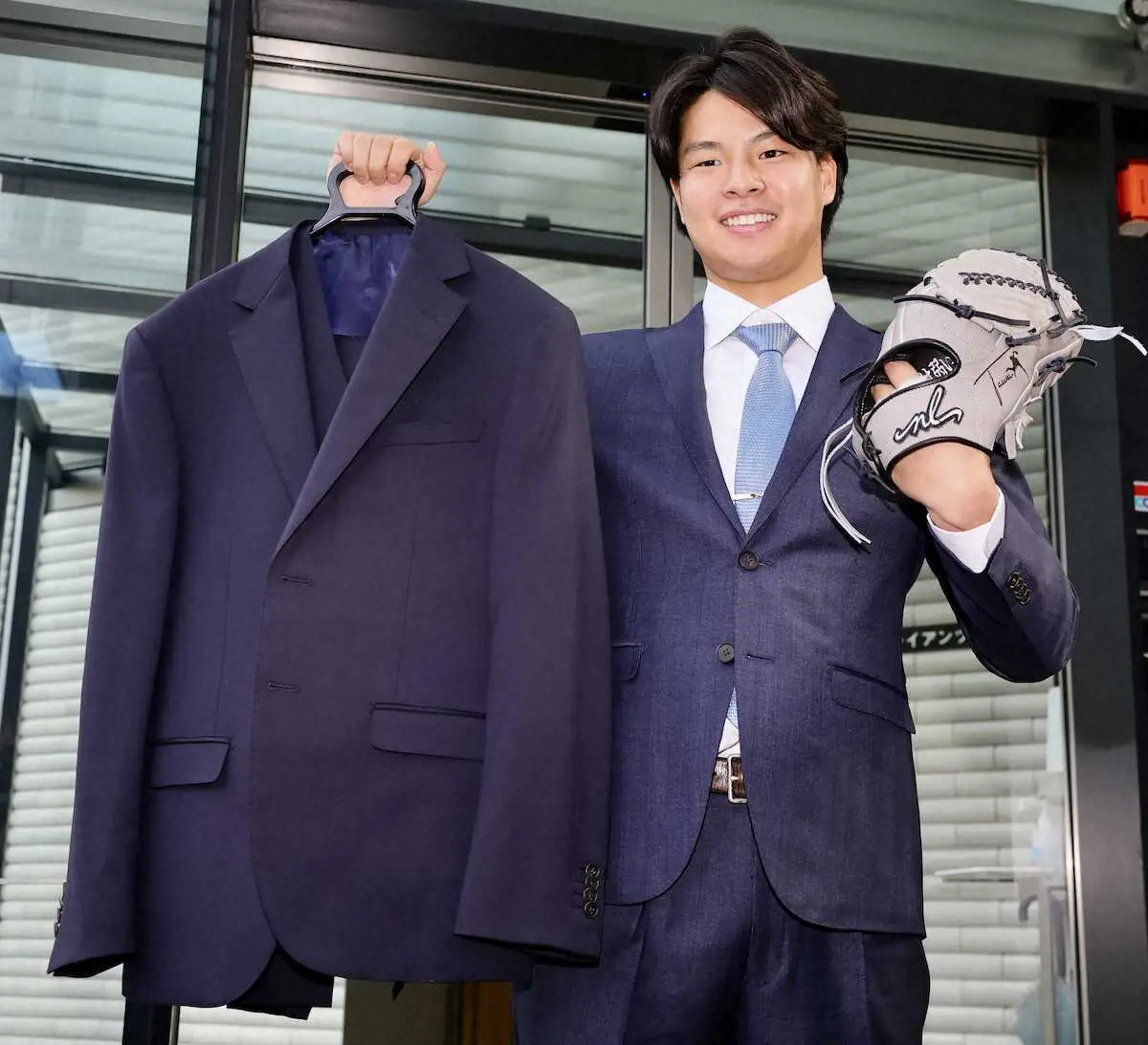 巨人のドラフト2位・田和廉 オーダーのスーツ&グラブ持参で入寮「スーツの似合う選手になりたい」