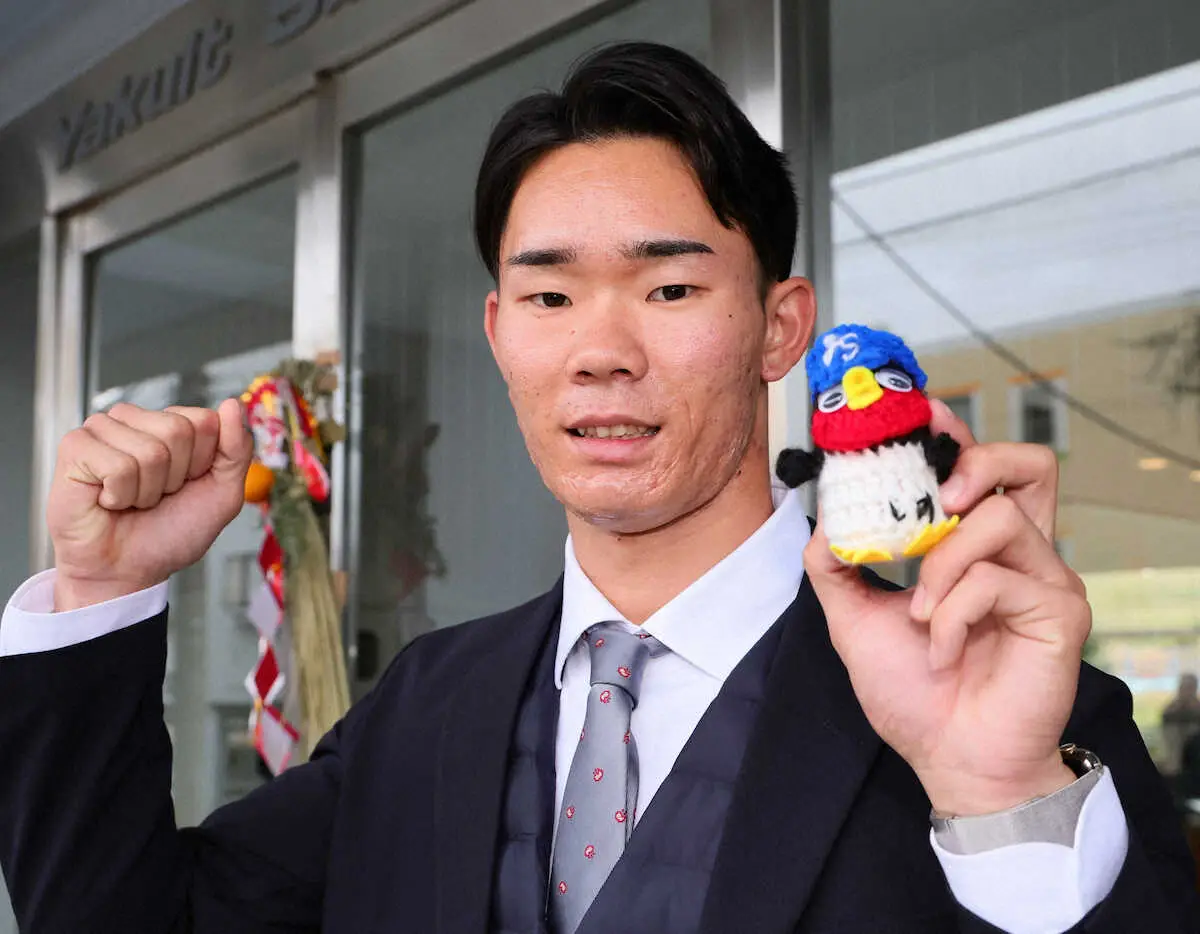 ヤクルトのドラ2・松川玲央 闘病中の祖母作製の「つば九郎」と入寮 「1軍で活躍する姿を見せたい」