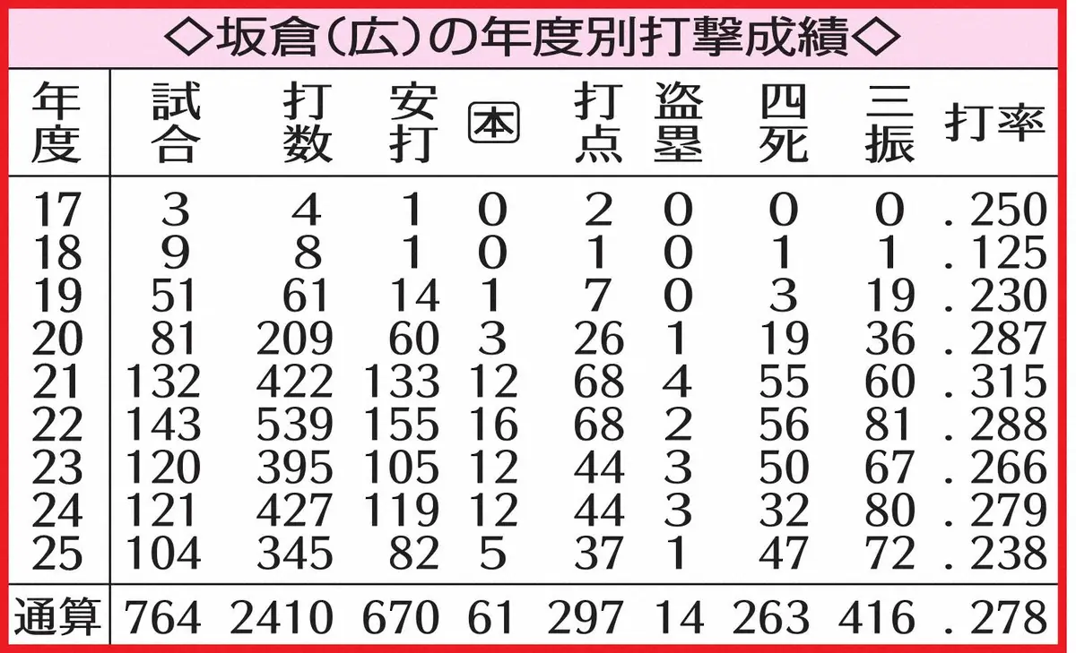 高知市内で自主トレを公開した坂倉 Photo by スポニチ 広島・坂倉将吾が広角打法で“ウマ”くなる 10年目の逆襲へ午年の誓い 高… ギャラリーで見る この記事のフォト 2026年01月11日の画像一覧 もっと見る 2026年01月11日の画像をもっと見る