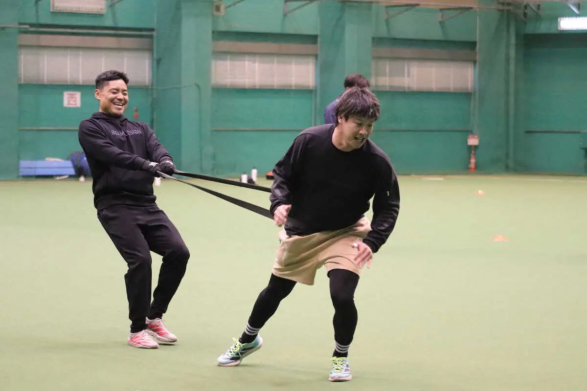松山自主トレ組では今年から最年長。古賀、阪神・坂本、ロッテ・松川と捕手陣も多く「キャッチャー同士ならではのいい練習もできている」と手応えを語った。