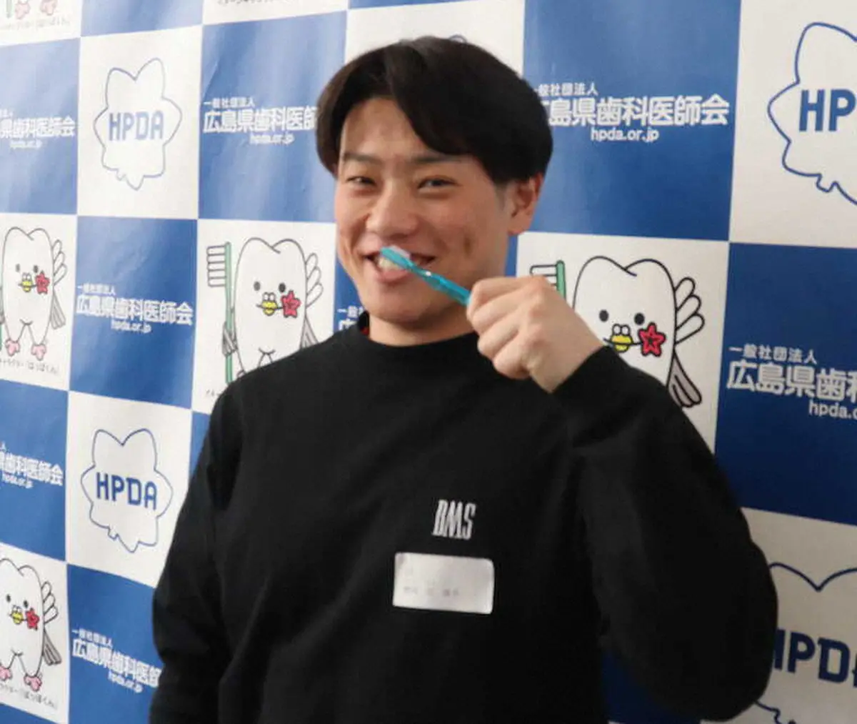 広島の新人9選手と現役ドラフトで楽天から加入した辰見が、広島市内で歯科検診に臨み、ドラフト3位・勝田(近大)が歯のかむ力を示す咬合(こうごう)力でトップを記録した。