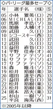 昨季は6月から守護神を任され、セーブシチュエーションでは1度の失敗もなく31セーブで初のセーブ王に輝いた。チームのリーグ3連覇へ失敗ゼロを継続し、さらに3人斬りを“定番”にしていければ、相手に与える絶望感、味方への安心感は計り知れない。