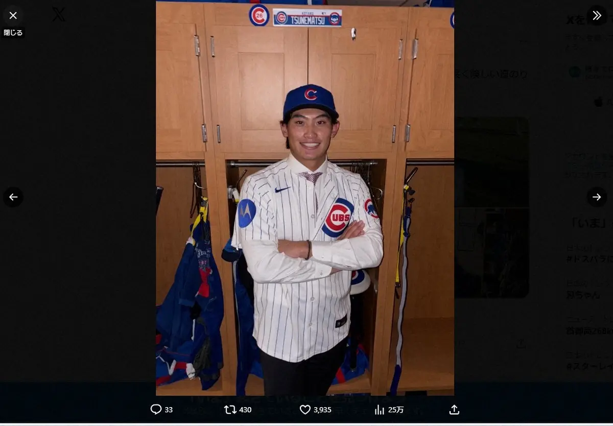 自身のXに「Chicago Cubs(@Cubs)とマイナー契約を締結しました。長く険しい道のりだと思いますが、楽しみながら一歩一歩這い上がります。応援よろしくお願いいたします!」と投稿。ユニホーム姿で契約書にサインする写真などを載せた。