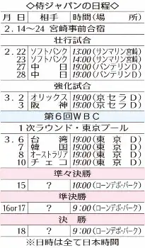 大リーグの合流時期については「時期は名古屋から合流ってのはメジャー選手全員には伝えてるのでそこでは来てほしい。京セラの強化試合から出られるってところでは時差も含めて名古屋では合流してほしいとは伝えています」とした。侍ジャパンは2月27、28両日にバンテリンドームで壮行試合・中日戦、3月2日、3日には京セラドームで強化試合が組まれており、2日はオリックス、3日は阪神と対戦する。